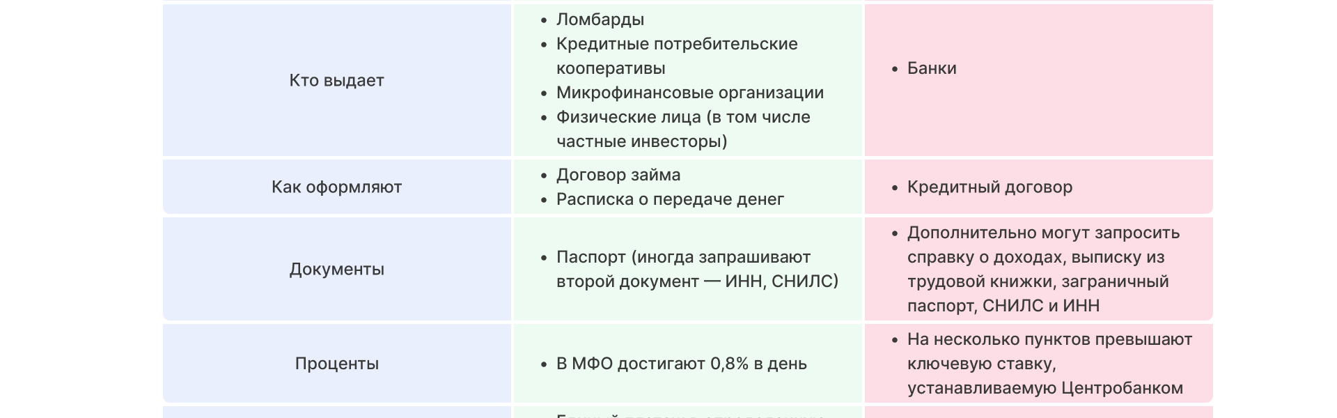 Если резюмировать отличие кредита от займа для бытового понимания, то получается следующая картина: