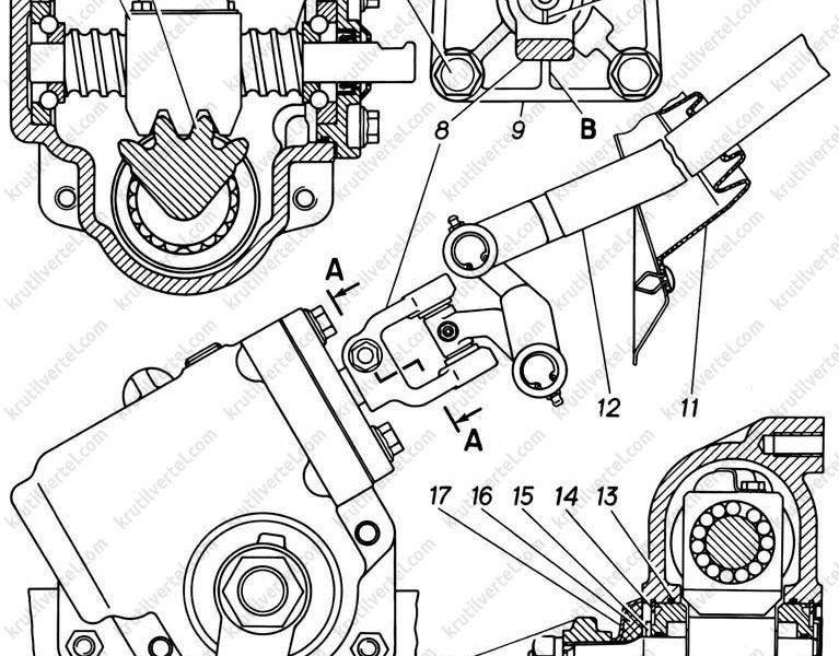 — покачать винт рулевого механизма за закрепленную вилку рукой; если при этом винт будет иметь осевое или радиальное перемещение (люфт вилки относительно крышки рулевого механизма), то подшипники винта надо регулировать.