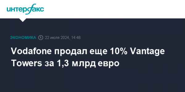 Британский оператор мобильной связи Vodafone Group AG продал еще 10% подразделения в сфере телекоммуникационной инфраструктуры Vantage Towers AG за 1,3 млрд евро, говорится в сообщении компании. Покупателем выступил консорциум инвестфондов во главе с Global Infrastructure Partners (GIP) и KKR, управляющий…