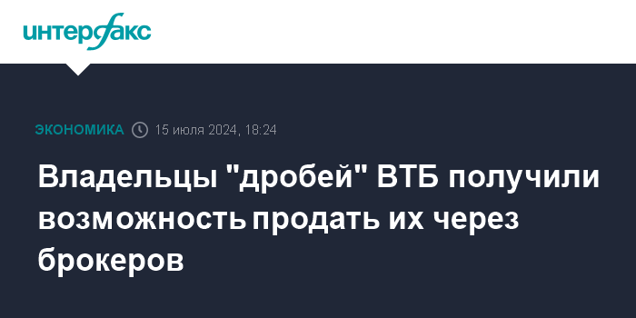 Клиенты ВТБ могут продать дробные акции в приложении «ВТБ Мои инвестиции» и по телефону через трейдеров с 15 июля. Впоследствии ценные бумаги будут консолидированы до целых и проданы в рынок. ВТБ ожидает, что эту процедуру реализуют и другие брокеры. Такая схема связана как с небольшим количеством акционеров — владельцев дробных акций, так и с числом таких ценных бумаг, и позволяет обеспечить быстроту и удобство сделок.